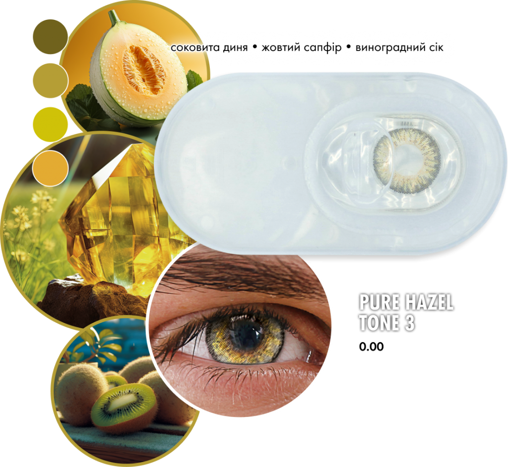 pure hazel, hazel, true sapphire, green, turquoise, gray, brown, amethyst, honey