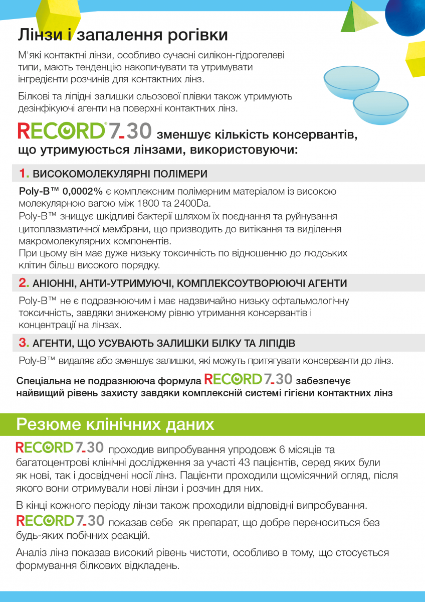 Консервант Poly-B (1700-2400 н.м.) має велику вагу та не накопичуєтся в матеріалі контактних лінз.